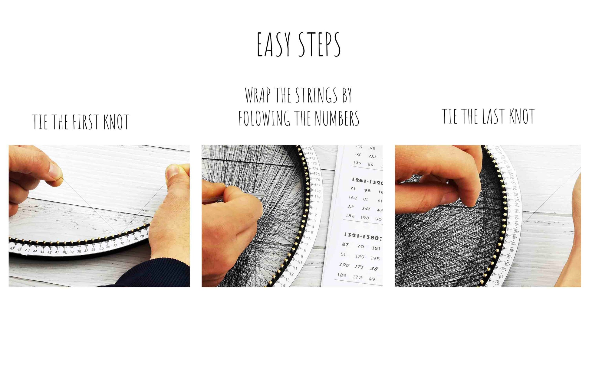 Key to this option is a made-simple, well-built foundation. Besides the basic tool pack, a pre-drilled white canvas and a high quality round wooden frame are included in the package. The dirty work is already done as the template has been drilled and with nail holes already marked out.